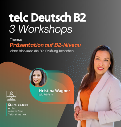 Als telc-Prüferin weiß ich genau, wie du deine B2-Prüfung bestehen kannst. Ich unterstütze dich gerne und zeige dir, wie du dich optimal auf deine Prüfung vorbereiten kannst.